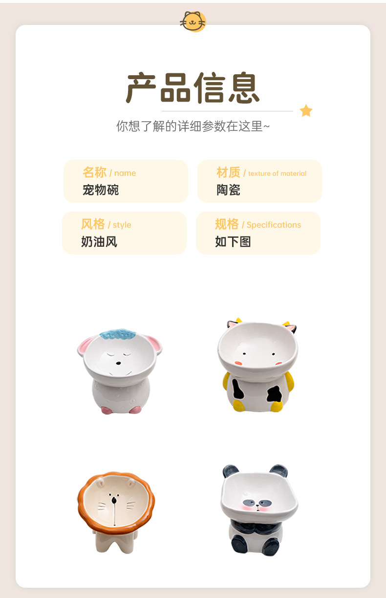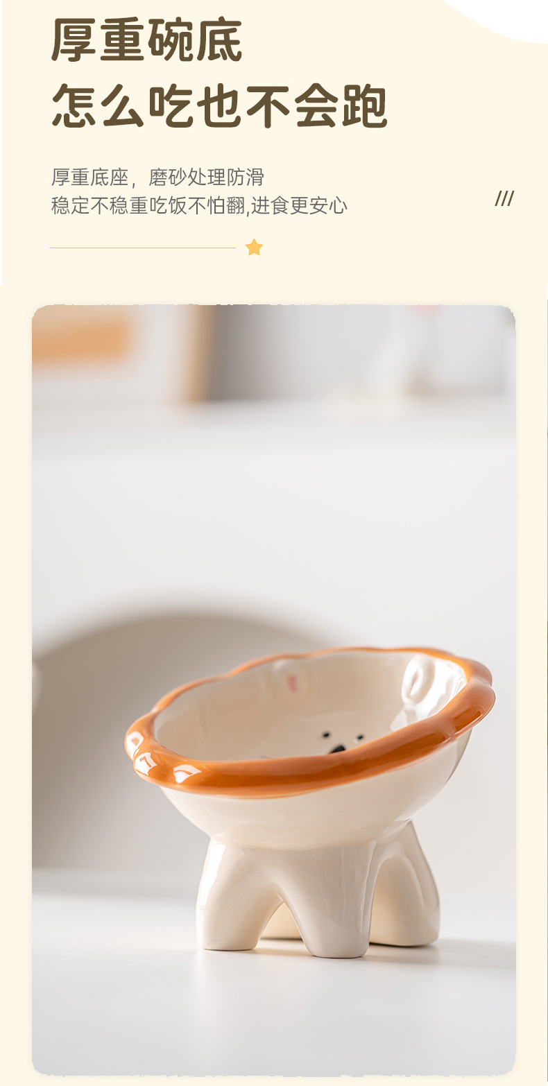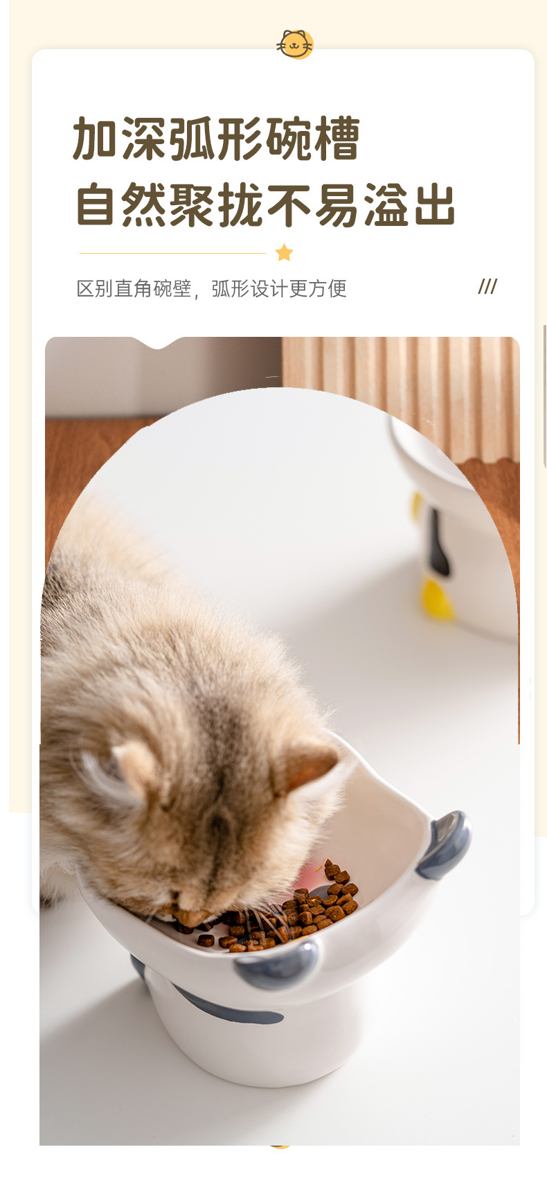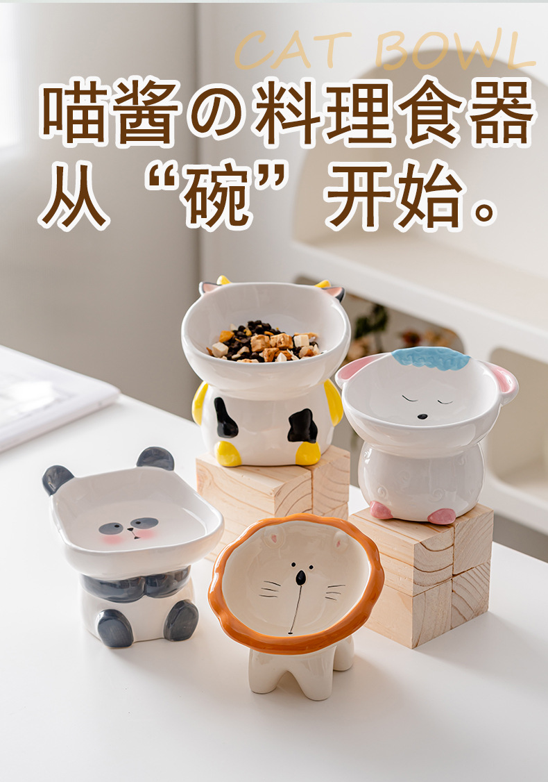 高脚斜口陶瓷猫碗 创意护颈宠物饭碗 可爱动物防打翻猫咪狗狗食盆