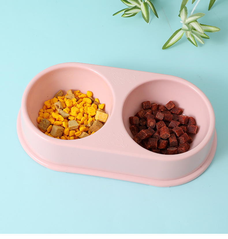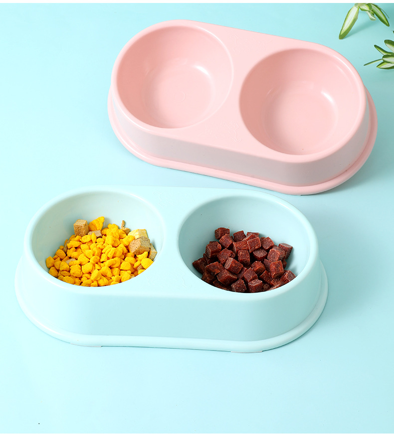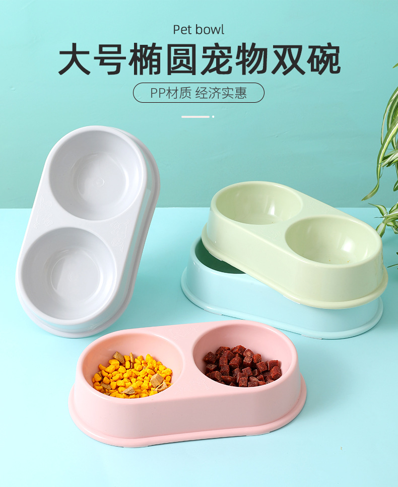 厂家批发优凡新款马卡龙色塑料双碗大号 狗狗食具水碗宠物碗狗碗