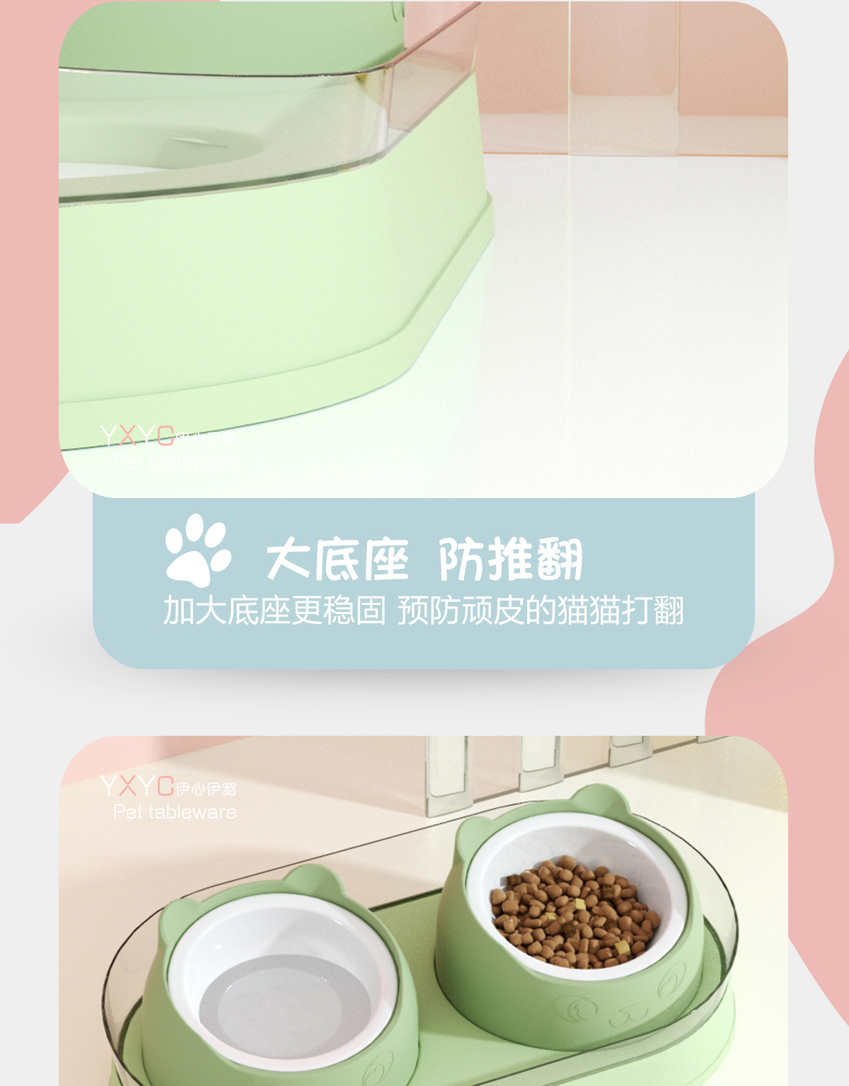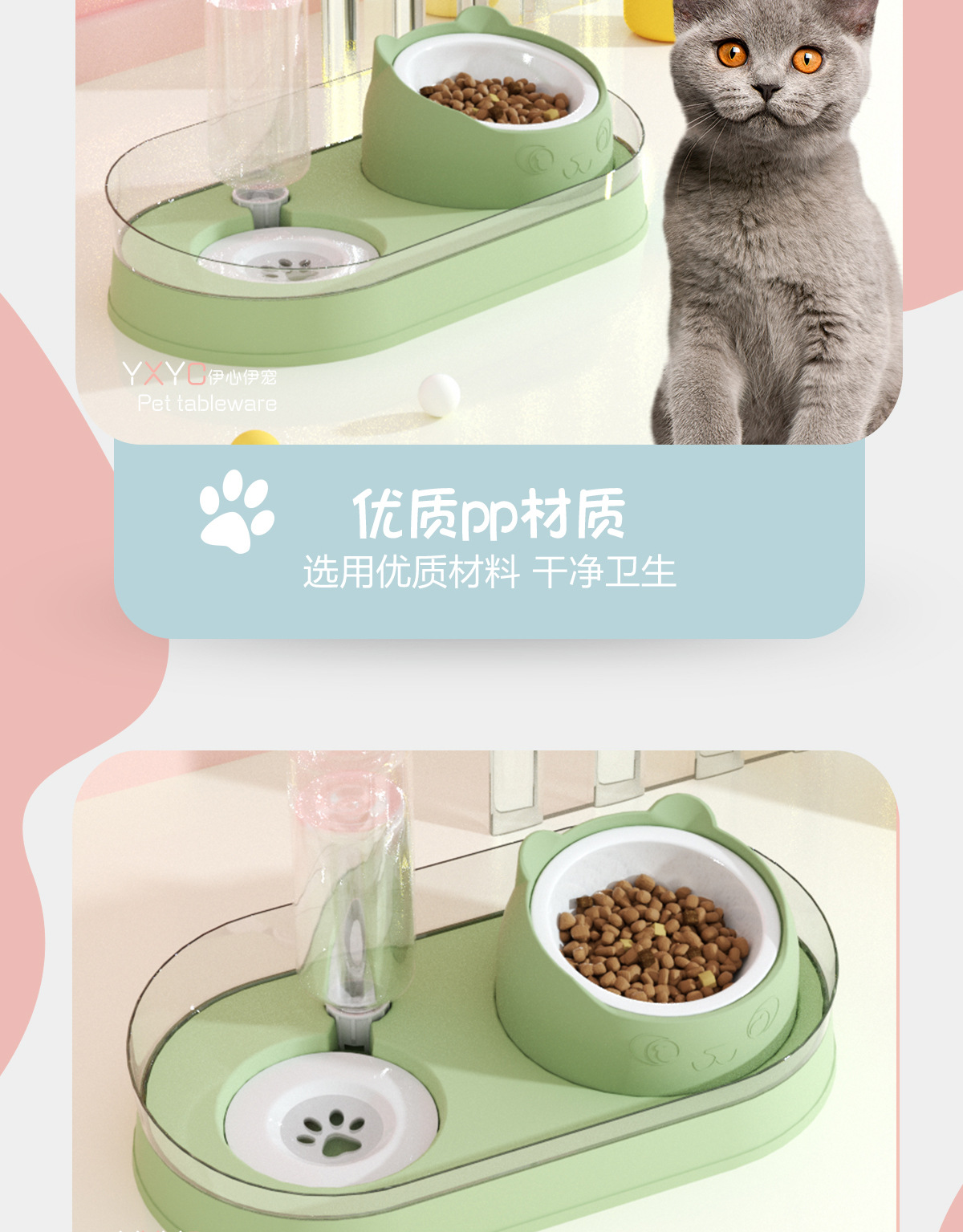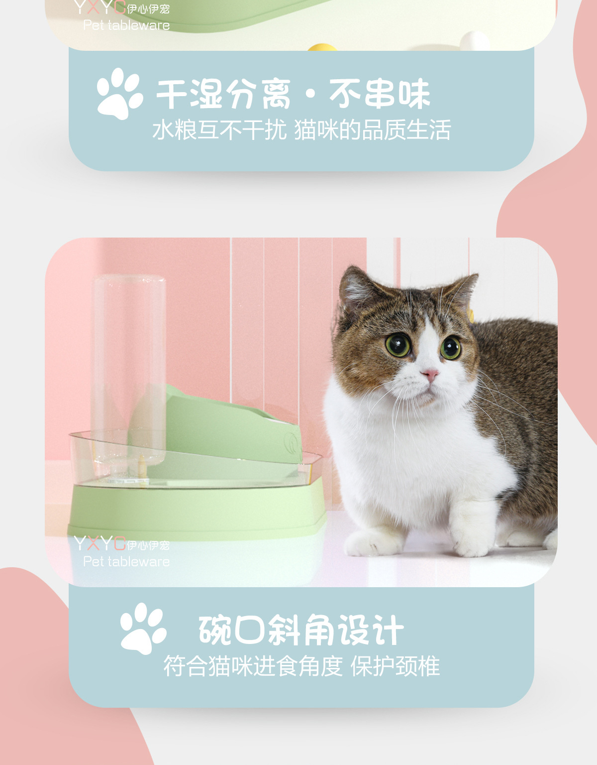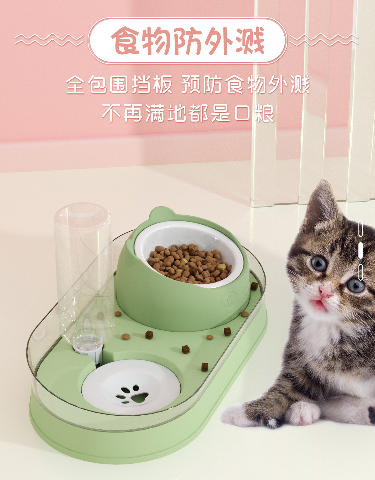 猫碗陶瓷双碗保护颈椎斜口自动饮水狗碗猫咪粮食盆宠物喝水防打翻