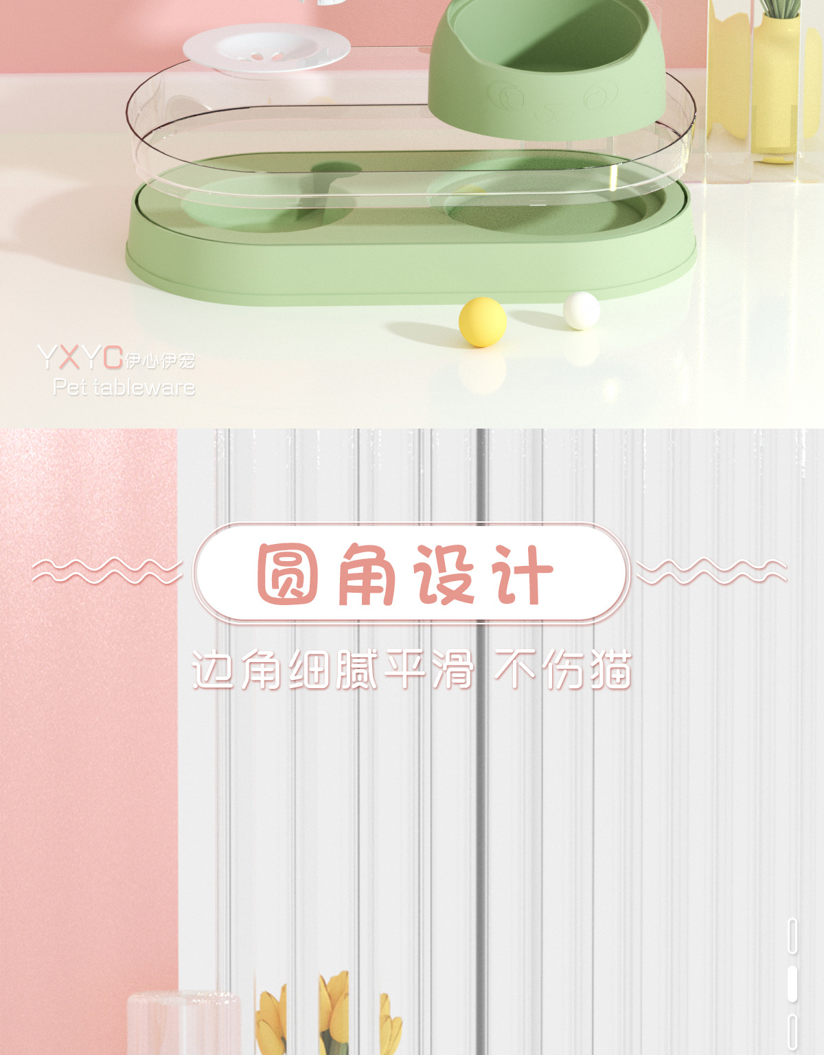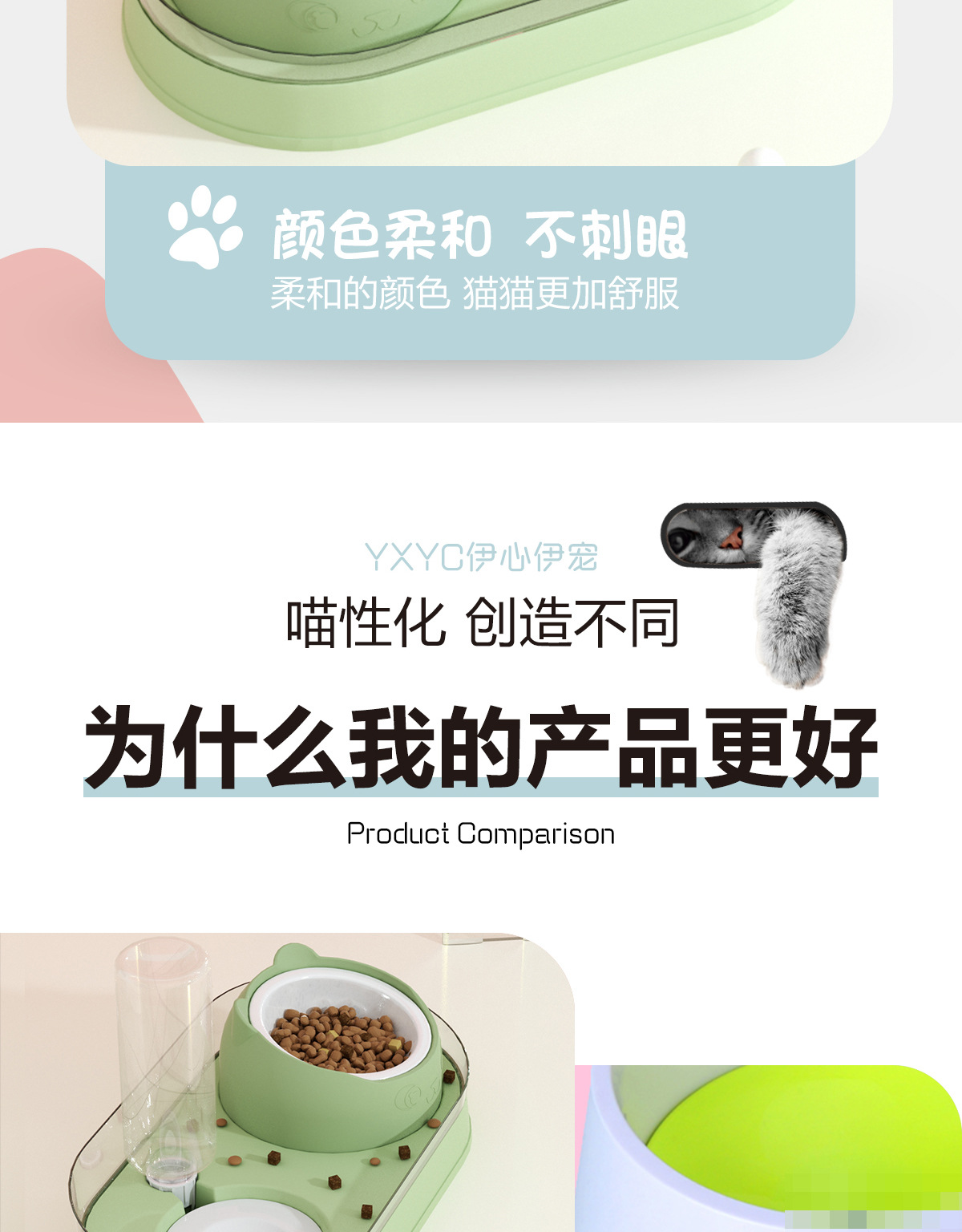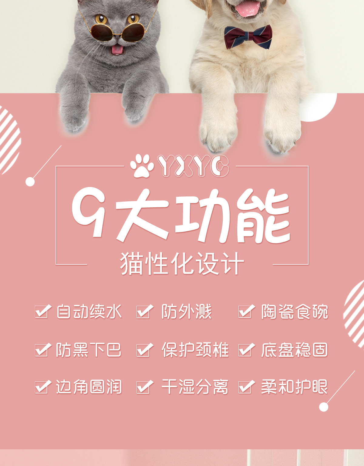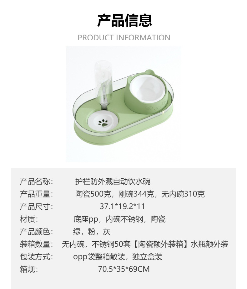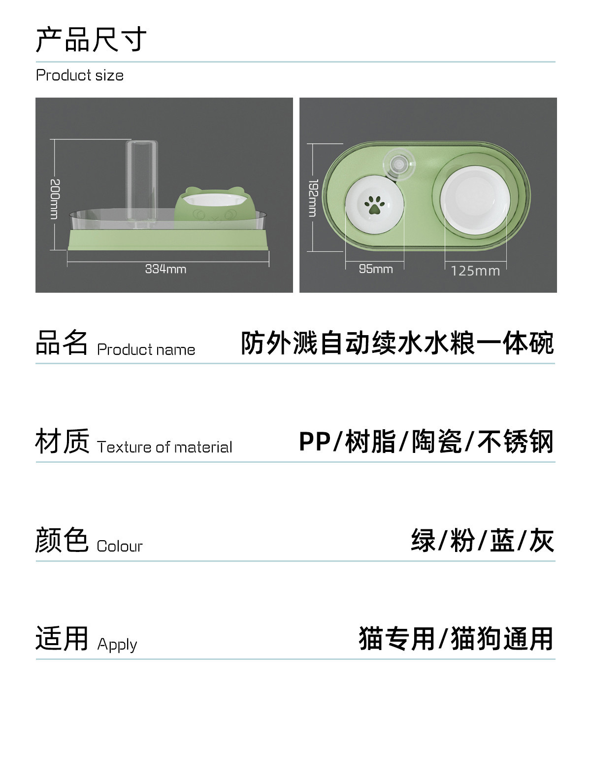 猫碗陶瓷双碗保护颈椎斜口自动饮水狗碗猫咪粮食盆宠物喝水防打翻