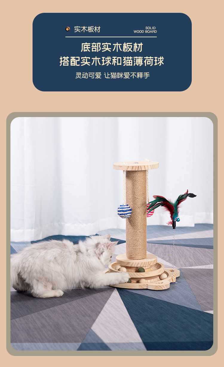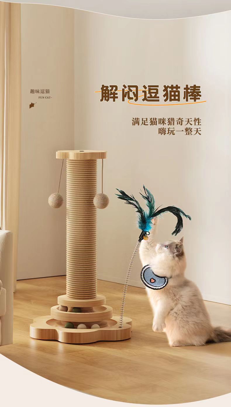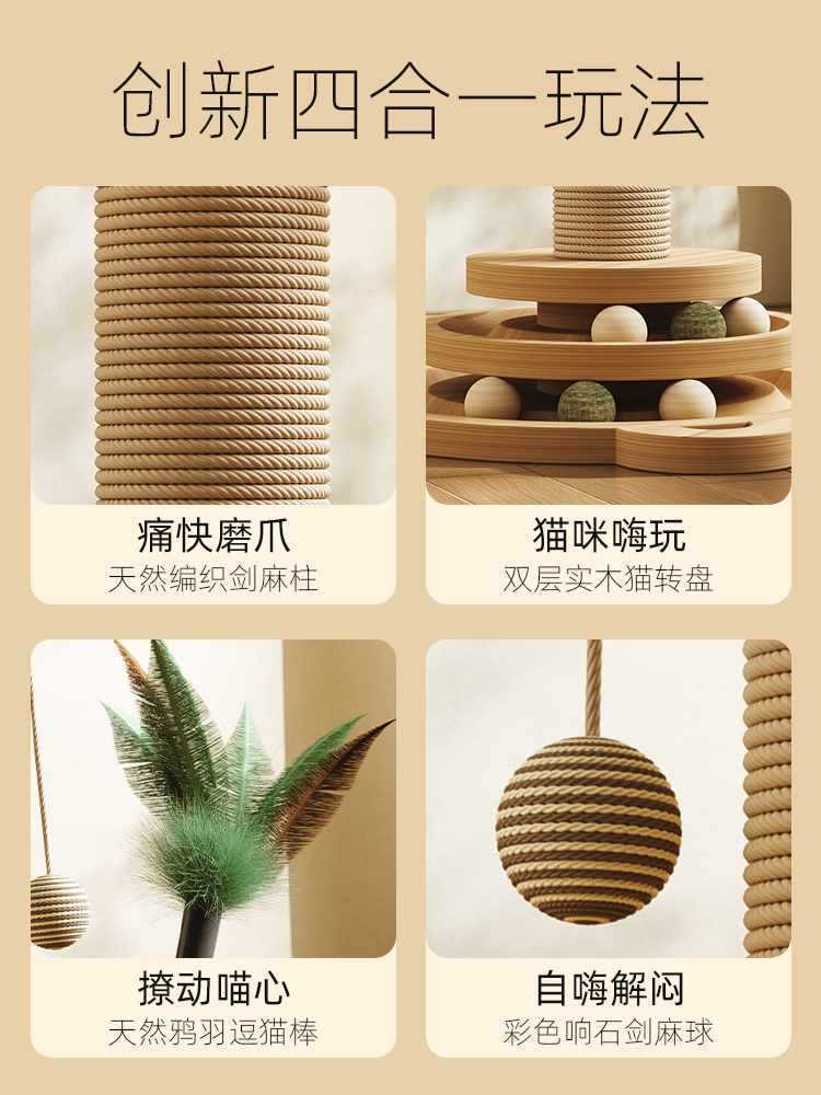 立式猫抓板耐磨不掉屑转盘逗猫棒一体自嗨解闷猫咪玩具剑麻爪柱