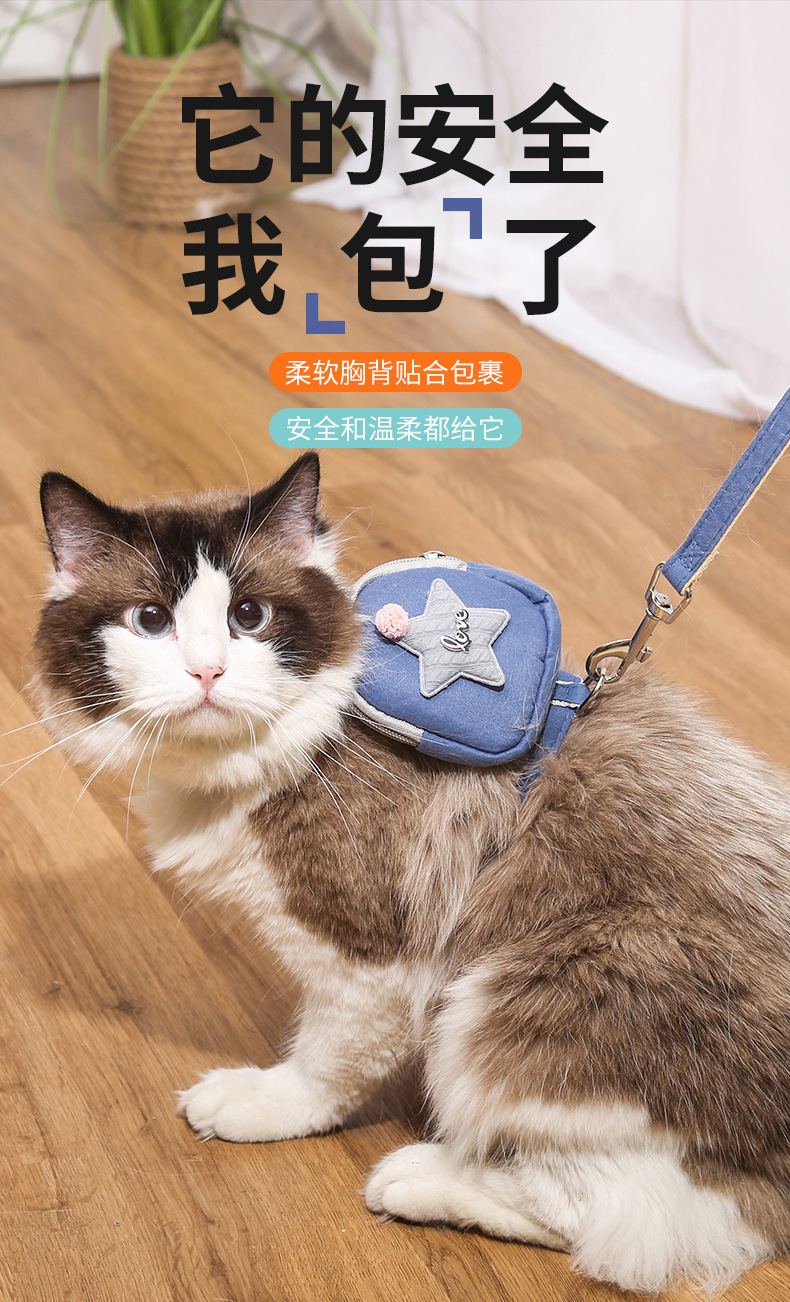 狗狗牵引绳猫咪外出背包链子工字背中小型犬胸背带遛狗绳宠物用品