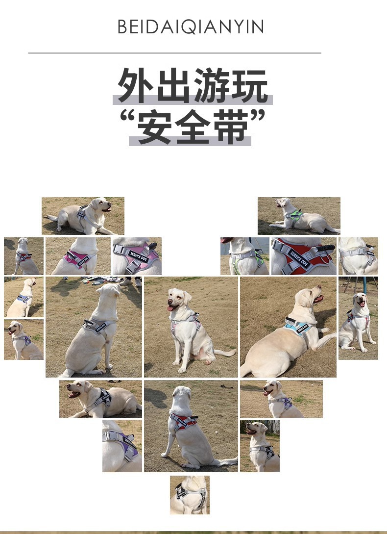 新款背心式胸背带加厚耐咬防爆冲遛狗绳中大型犬金毛牵引绳