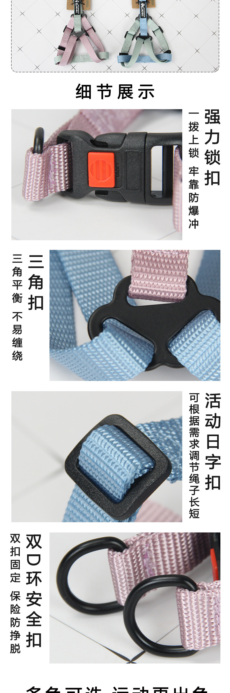 新款牵引绳可调节狗狗胸背带背心式单个背带大中小型犬遛狗绳批发
